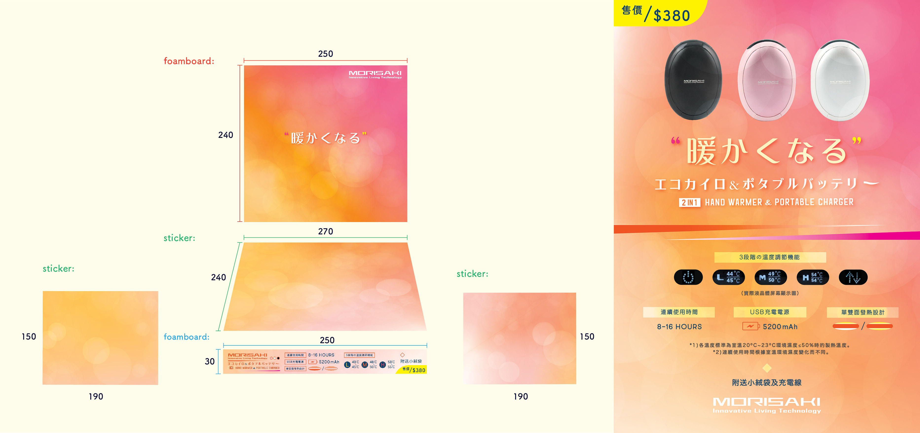 A winter shop display design for the 2in1 hand warmer and portable charger series.